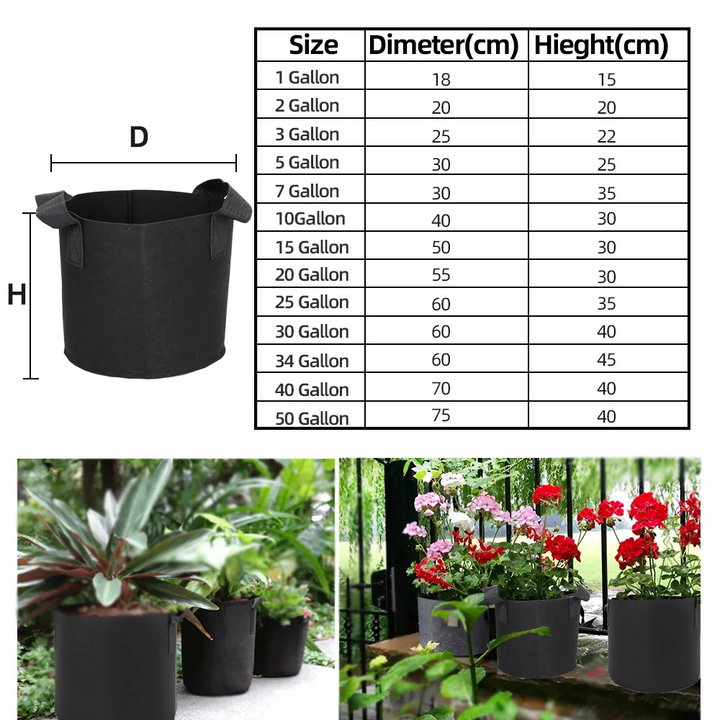 Upgrade your gardening experience with our Felt Grow Bags, made from premium non-woven fabric for superior aeration, drainage, and convenience. Ideal for growing vegetables, herbs, flowers, and fruits indoors or outdoors.